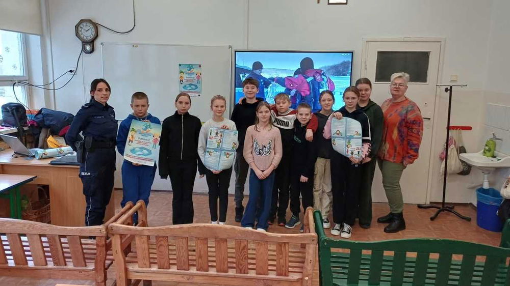 Przed feriami profilaktyk z Komendy Powiatowej Policji w Szczecinku wraz z promotorem zdrowia ze stacji sanitarno epidemiologicznej odwiedziła uczniów Szkoły Podstawowej w Łubowie Szkoły Podstawowej nr 4 im Armii Krajowej w Szczecinku oraz Szkoły Podstawowej w Jeleniu by przygotować dzieci i młodzież do bezpiecznego wypoczynku zimowego.