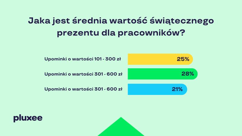 28% może liczyć na podarunek w przedziale 301-600 zł i jest to dziś najczęściej spotykana wartość świątecznego benefitu,